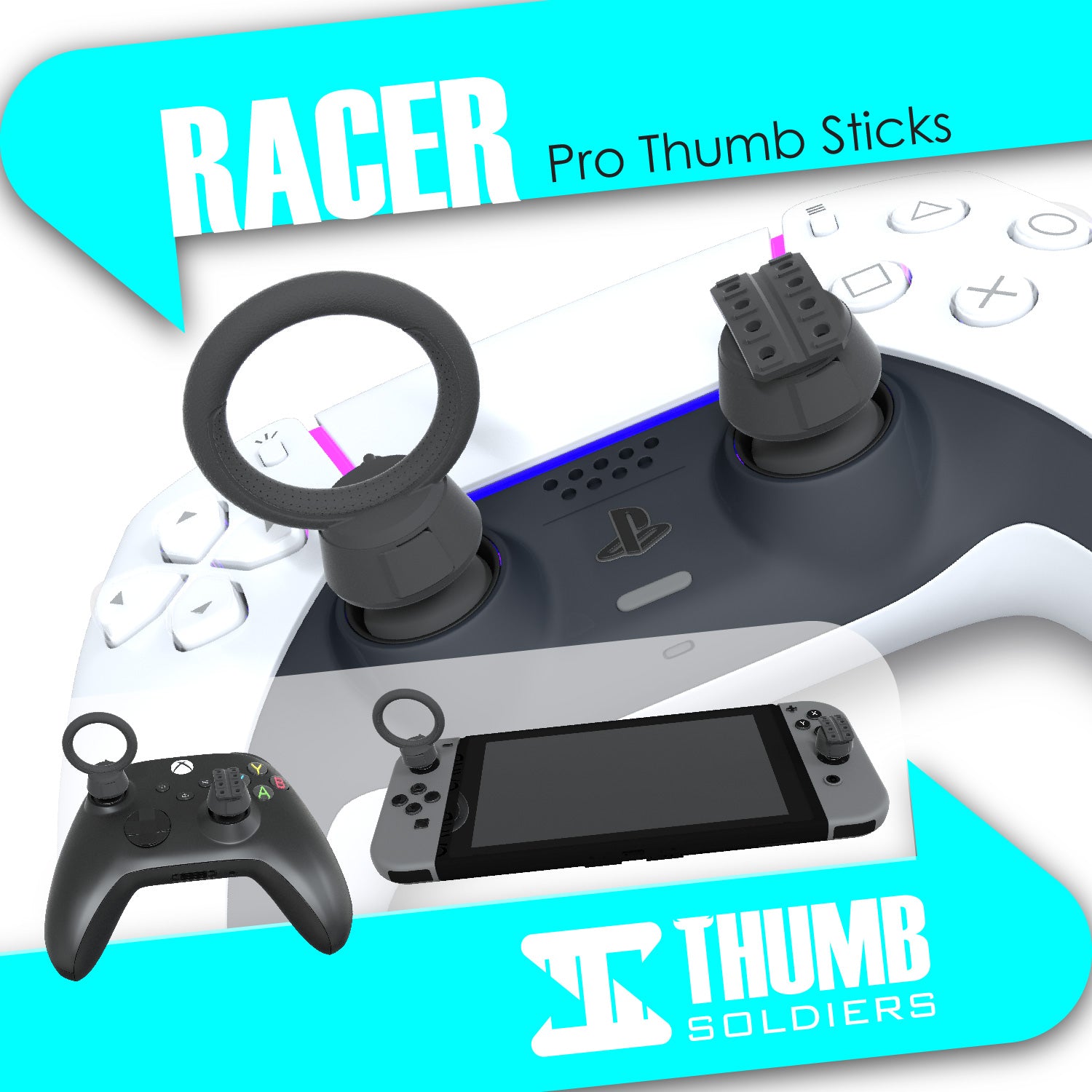 Built for tighter control over turns, traction, and fine steering inputs with smooth, responsive thumb stick movement. This Racing Pack will level up your steering accuracy for cleaner lines and faster laps, making every race feel more satisfying.