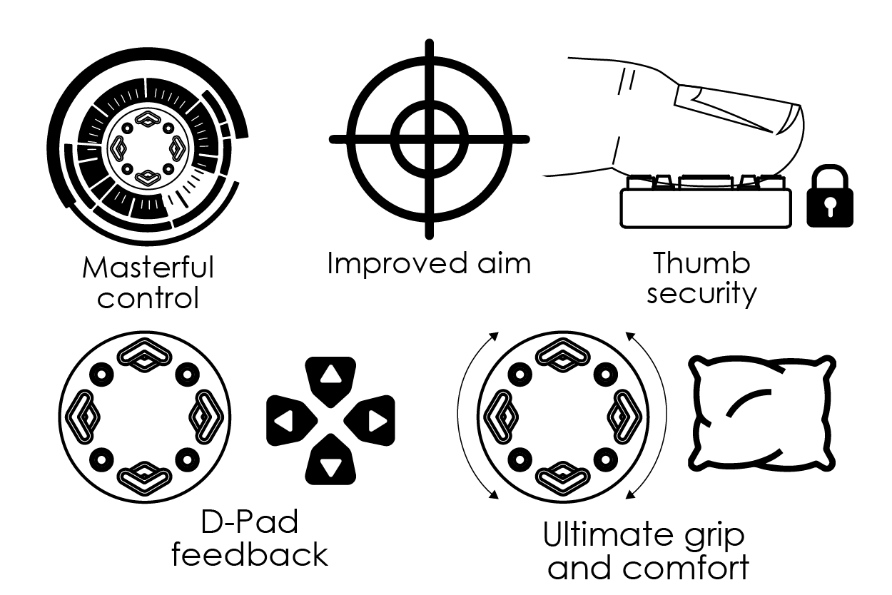 The outer grip locks your thumb in place, delivering unmatched precision and superior control. The enhanced grip of these controller thumb grips enables you to intuitively sense angles and inputs for pinpoint accuracy. The best way we can put it? It's like having a D-pad built into your thumbsticks.